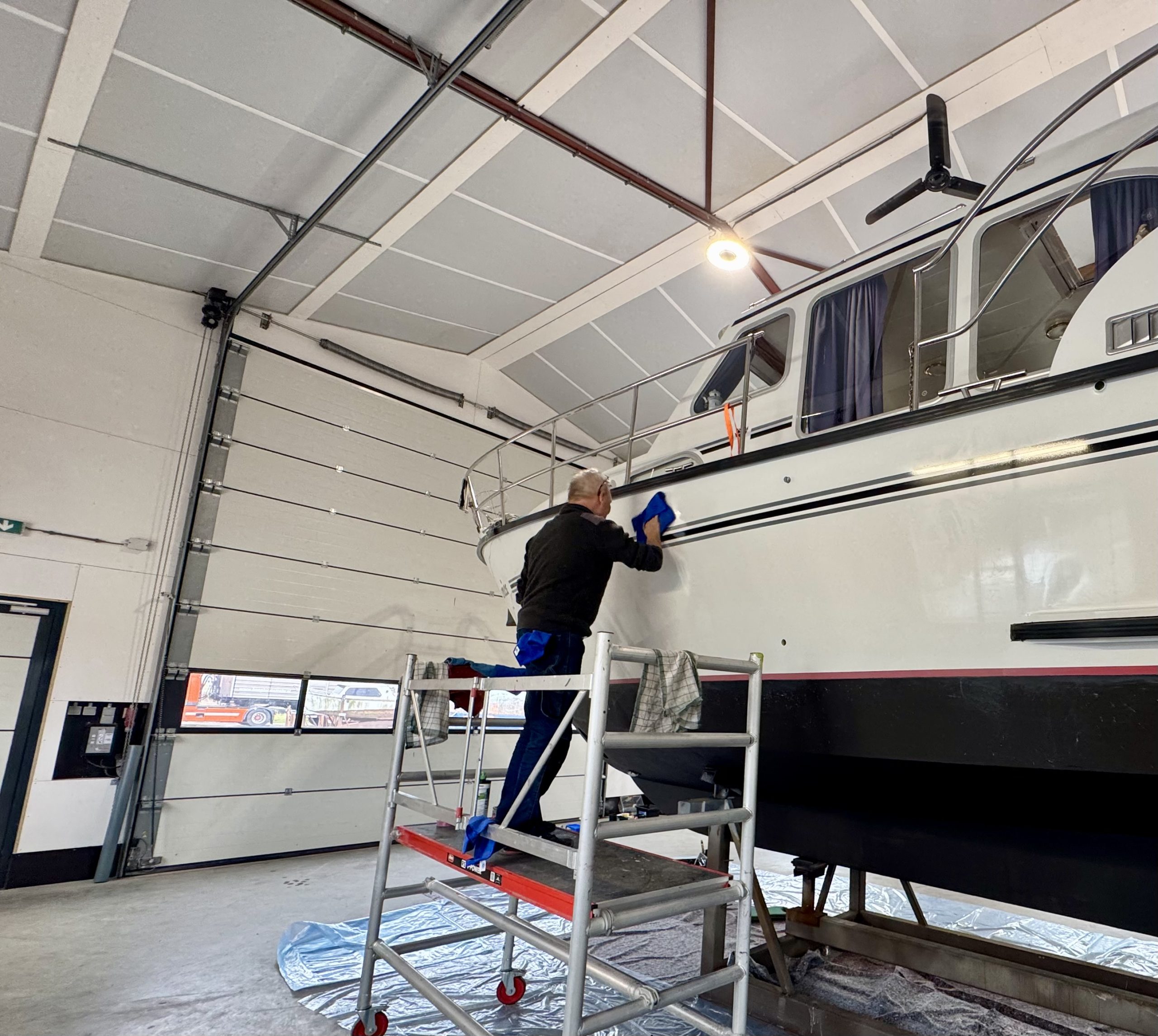 Een belangrijk voordeel van onze doe-het-zelf loods is dat deze verwarmd en geïsoleerd is. Daardoor kunt u ook in de koudere maanden comfortabel doorwerken aan uw boot. Dat is niet alleen prettig tijdens het klussen, maar ook belangrijk bij werkzaamheden zoals schilderen, waarbij de omstandigheden een grote rol spelen.